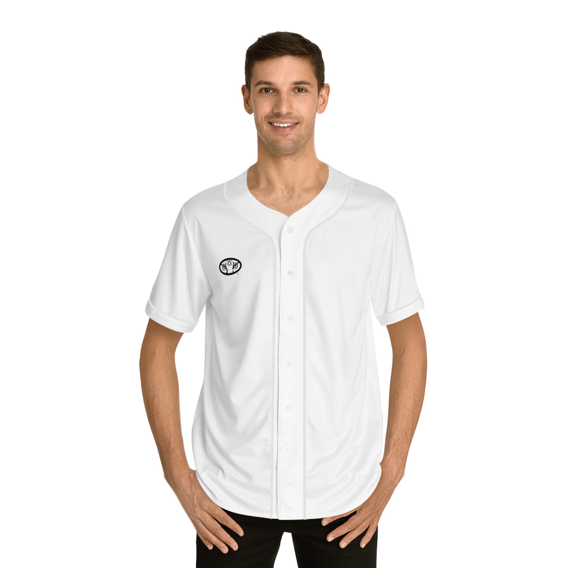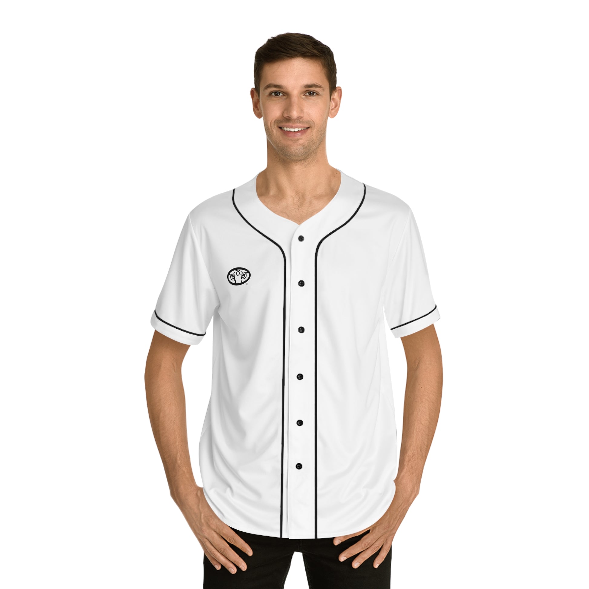 All-over prints make the crowd go wild - add yours now to this men's AOP baseball jersey & create an instant classic. Featuring a full-button front and a rounded hem, these tees feature moisture-wicking fabric that keeps you cool when under pressure. Choose between a white or black trim color and buttons, add your design, and make it uniquely yours.